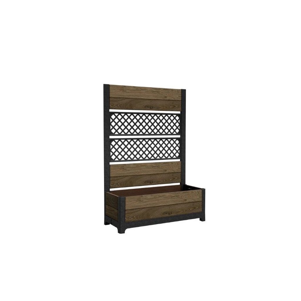 Ez a beépített ráccsal ellátott dizájner kaspó ideális megoldás futónövények termesztésére teraszon, erkélyen és a kertben. A fa dekoráció és a masszív konstrukció kombinációja modern megjelenésű, ugyanakkor természetesen illeszkedik a kültérbe. A rács stabil támaszt nyújt a növényeknek, míg az alsó kaspó elegendő helyet kínál az egészséges gyökérnövekedéshez. Praktikus és esztétikus kiegészítő, amely feldob bármilyen kültéri teret.