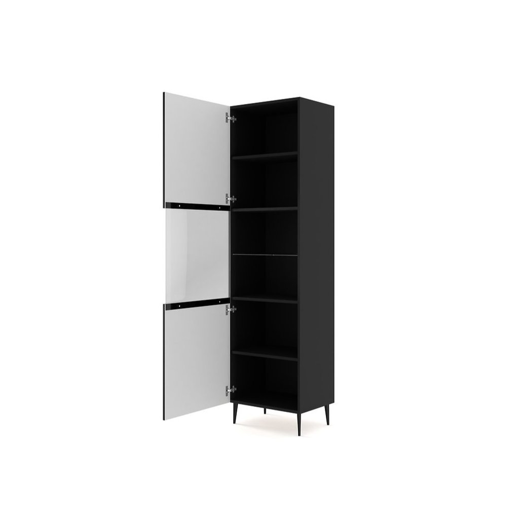 A modern vitrin RAVENNA B 1DS 60 már a nevével is sejteti, hogy egy gyönyörű , időtlen fekete matt színben készült bútorkollekcióról van szó. A RAVENNA B vitrin fogantyú nélküli előlapjai tökéletesen illeszkednek egymáshoz, és időtlennek tűnnek. A RAVENNA vitrin kialakítása , amely megfelel a legújabb trendeknek , olyan lábakat ad hozzá, amelyek stabilitást biztosítanak és különleges karaktert adnak. A vitrin „push to open” nyitórendszerrel rendelkezik, amely garantálja a kényelmes nyitást.
