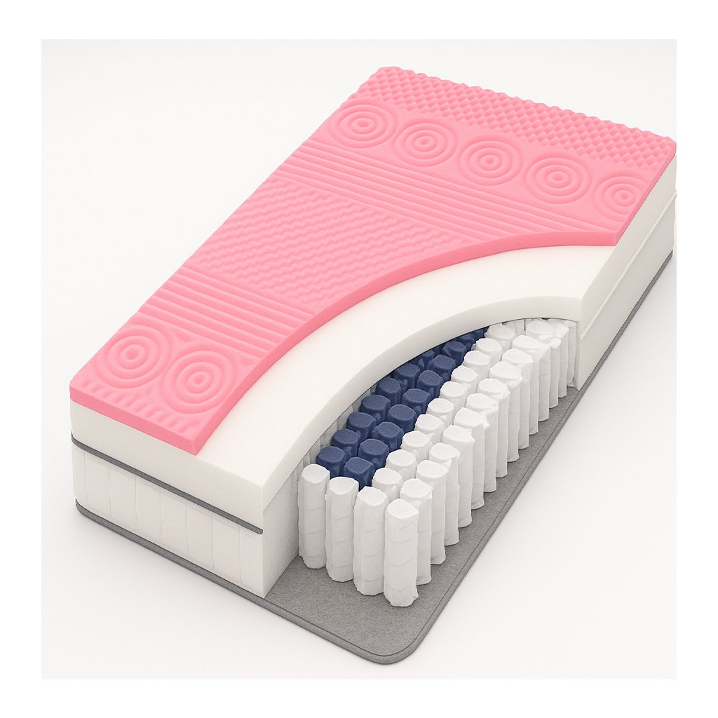A prémium kategóriás COMFORT ZONE zsebes matrac 25 cm magas, ideális megoldás mindazok számára, akik egészségesebb, kényelmesebb és jobb minőségű alvásra vágynak. A minőségi anyagok ötletes rétegezésének köszönhetően tökéletesen alkalmazkodik a testhez, természetes helyzetben tartja a gerincet, és kiváló légáteresztő képességet biztosít egész éjszaka. Úgy tervezték, hogy támogassa az egészséges testtartást, ellazítsa az izmokat, csökkentse az ízületekre nehezedő nyomást , és biztosítsa a pihentető alvást felesleges felébredések nélkül.