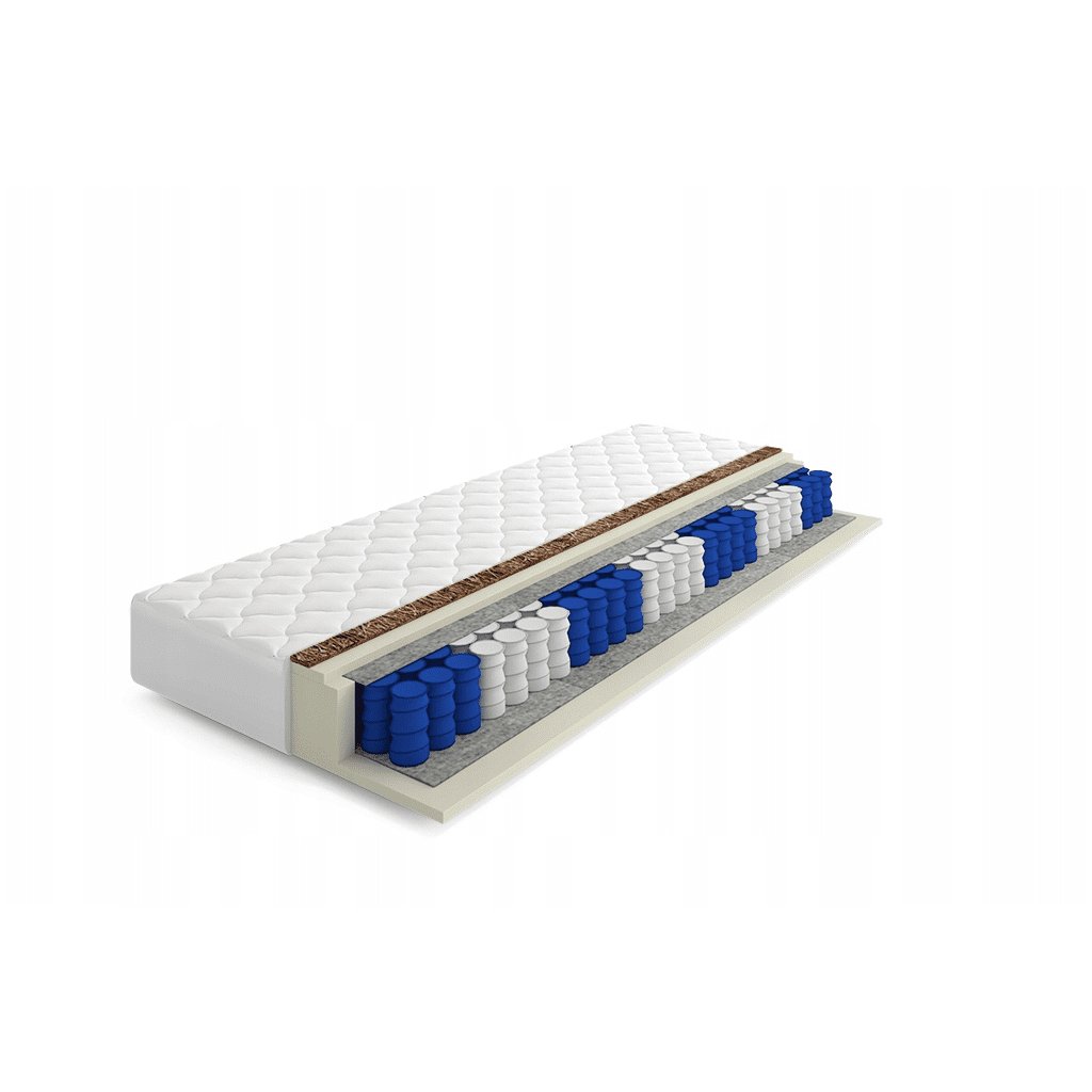 Minden egyes zsákrugó külön zsebben található, ami biztosítja a csendes működést és a test formájának pontos követését. A kókuszréteg egy természetes anyag, amely növeli a matrac keménységét, légáteresztő képességét és higiéniáját. A matrac kétoldalas használatra készült. A magas légáramlásnak köszönhetően megakadályozza a penészedést és a nedvesség felhalmozódását. A huzat cipzáras és mosógépben mosható.